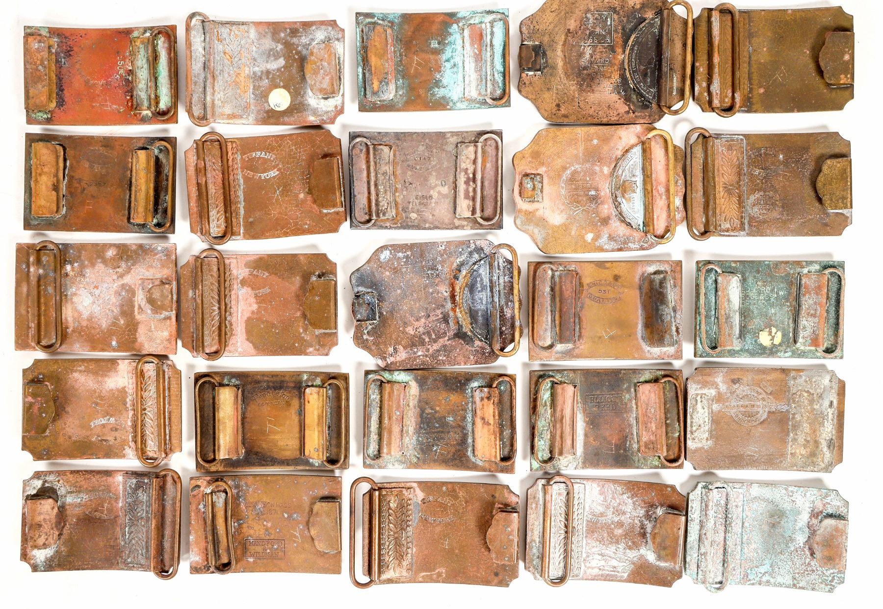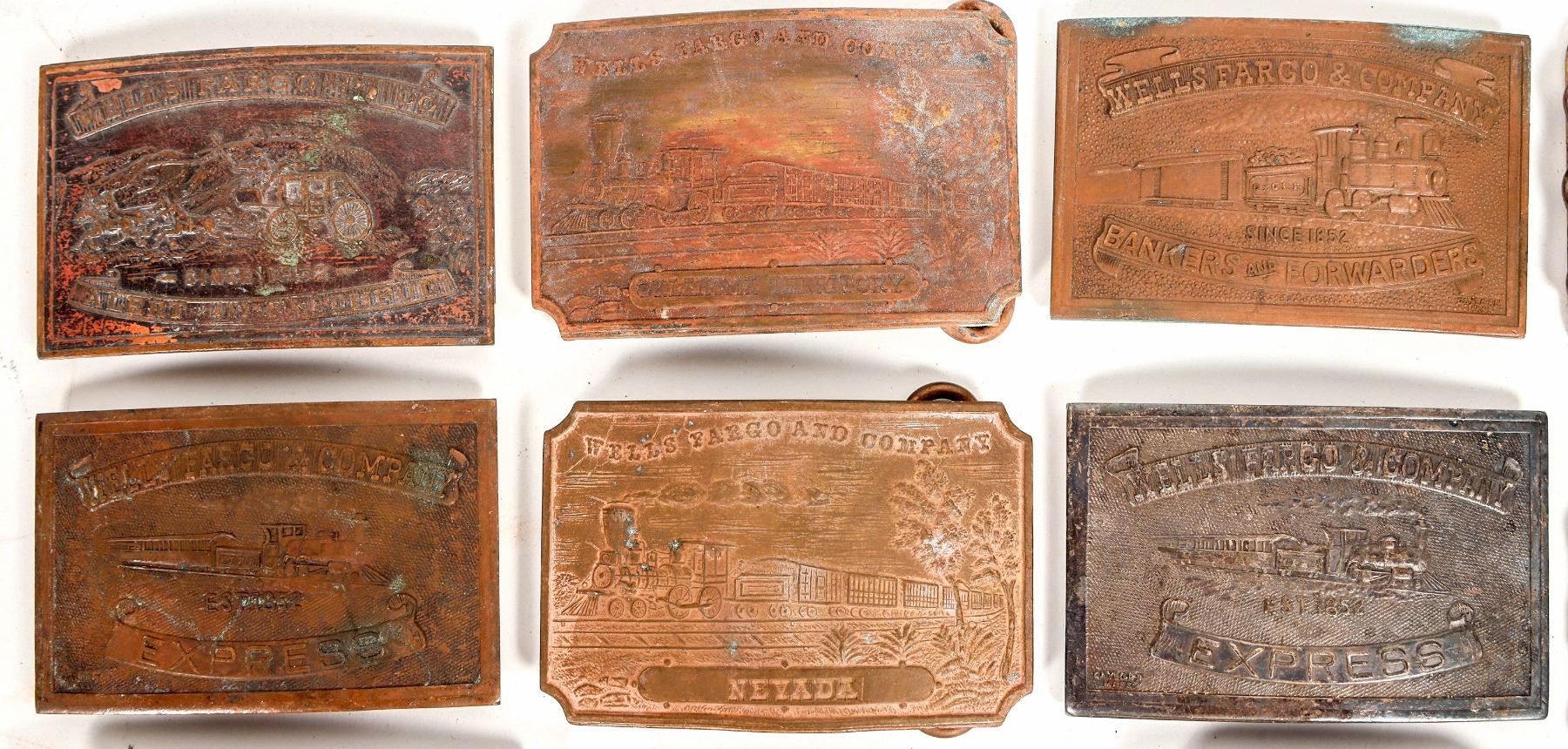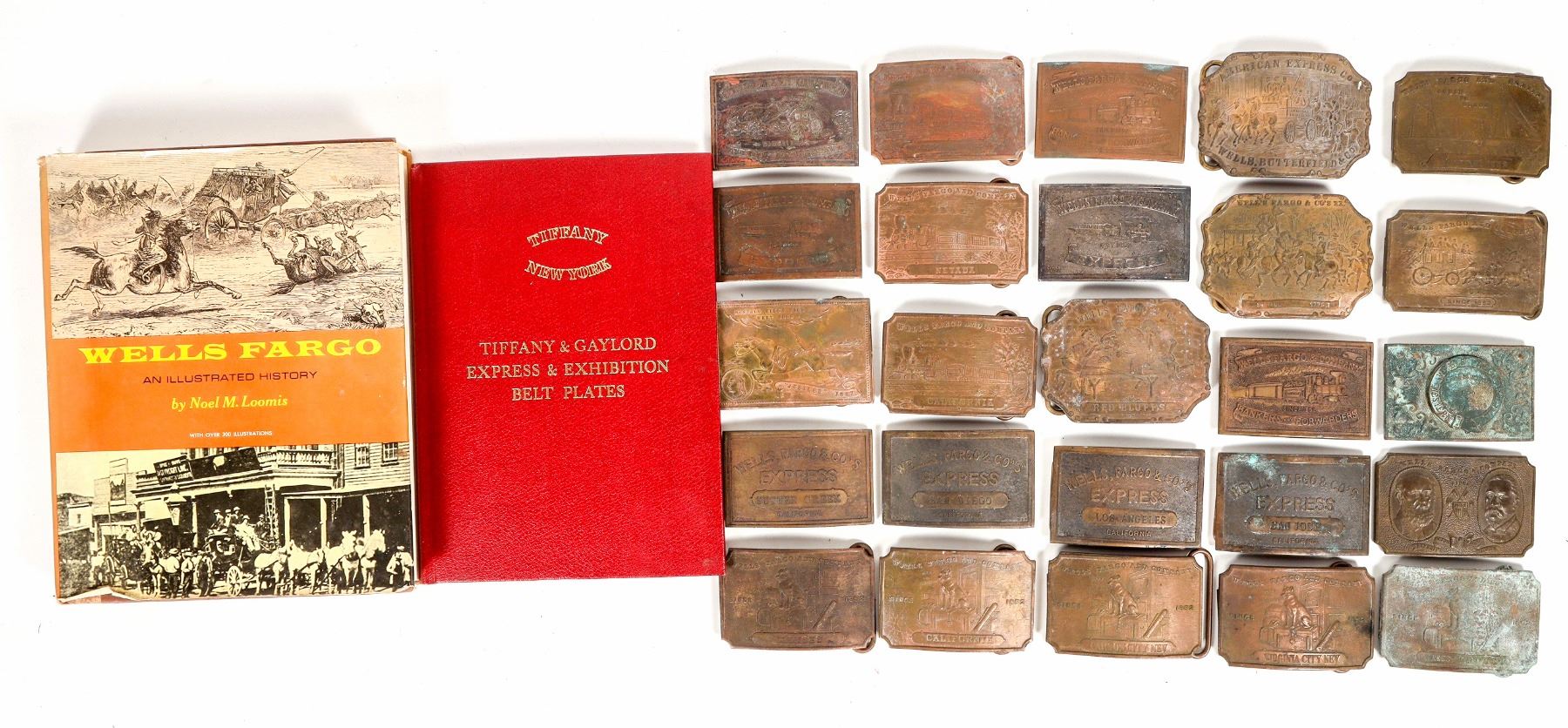These are fantasy pieces, not reproductions. 25 different, believed to be all made by John Fairchild if London in the 1960s. Distributed by Stan Lukowitz of the Bay area in the 1960s as a fun item for antique stores and collectors. Never originally sold as real. They even printed a false catalog, the authors are fictional people. Included with the lot are "Wells Fargo an Illustrated History" by Noel M. Loomis and "Tiffany & Gaylord Express & Exhibition Belt Plates" Collection was retained and in storage for 60 years! All have been scratched "F" for "Fantasy" on the back by us.
