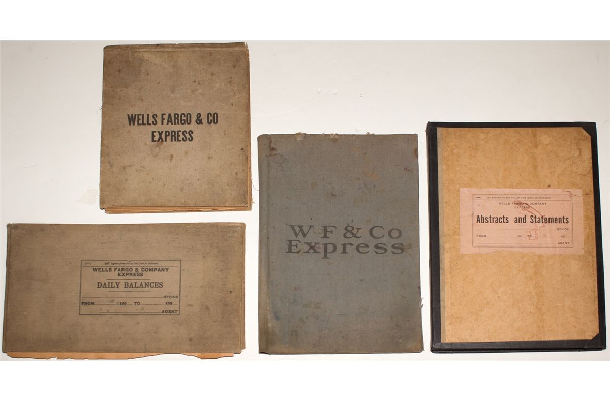 Lot of 4:ledgers and receipt books, no known location or blank. One from 1909, one from 1911. Great display items as they are have Wells Fargo or W.F. on their covers.