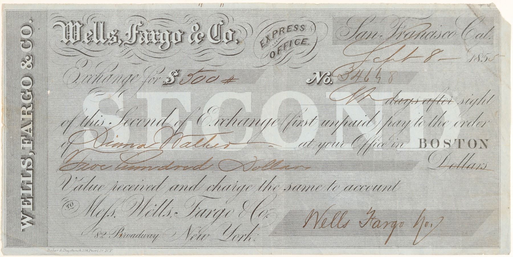 From Wells Fargo to Diana Walter of Boston. Dated September 8, 1855. # 34,648. $500.