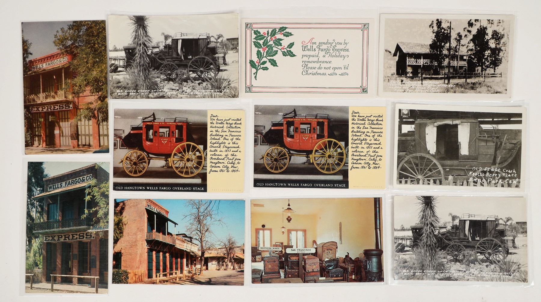 A collection of 10 Wells Fargo and stage coach postcards. All of them are in a sleeve.