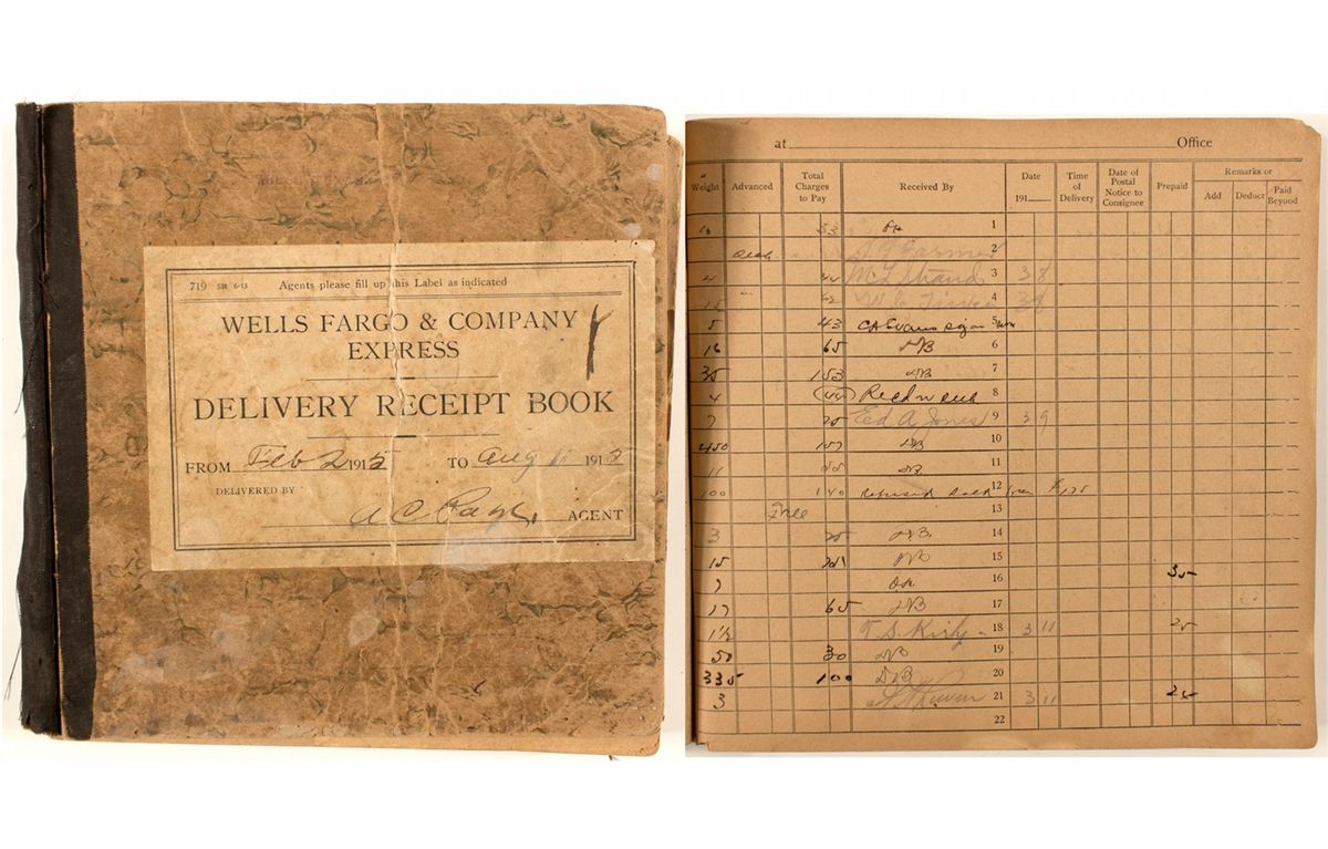 Ledger from 1915 recording delivery receipts. 8 1/2 x 8 1/2".