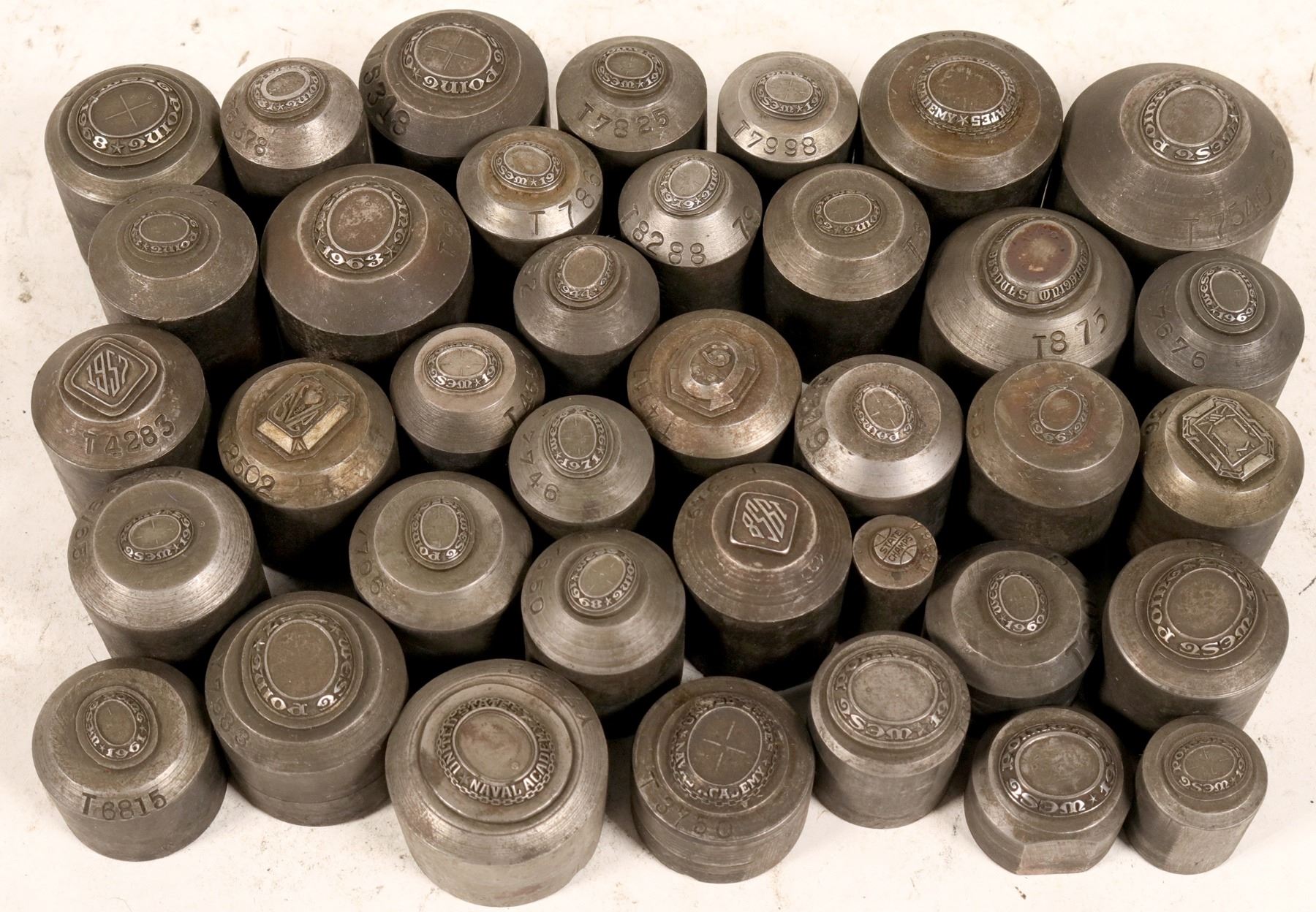 Approximately 33 steel hubs used to make the oval bezel that surrounds the large gemstone on the top of a class ring. Many of these were made for West Point, along with other designs. See photo for design details and size variation. Various size bezel designs for different ring sizes. These were originally made by Balfour in the mid-twentieth century.