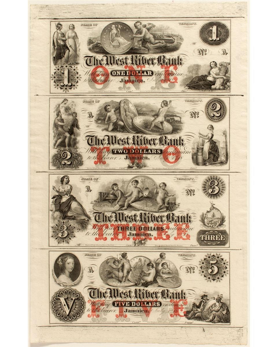 Uncut sheet: $1, $2, $3, and $5 notes. Marvelous piece! Date: 18-- Jamaica VT hwac 21337