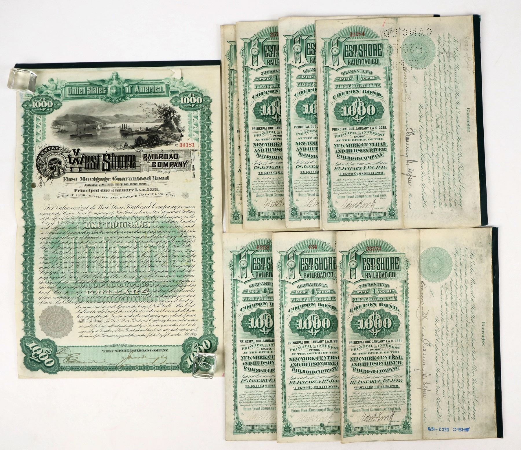 These are nine guaranteed bonds for the West Shore Railroad Co. of New York issued in 1885. Please see photo for details.