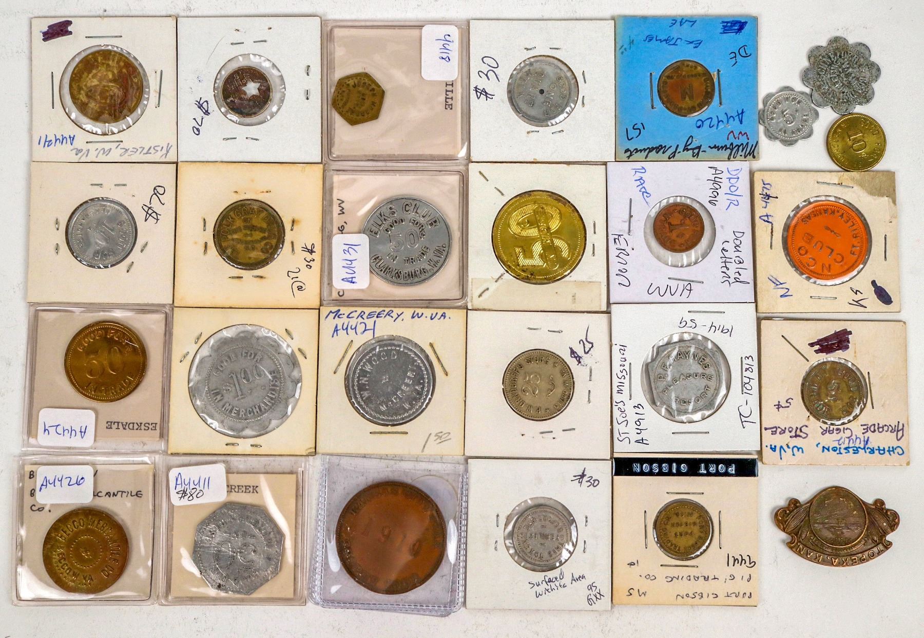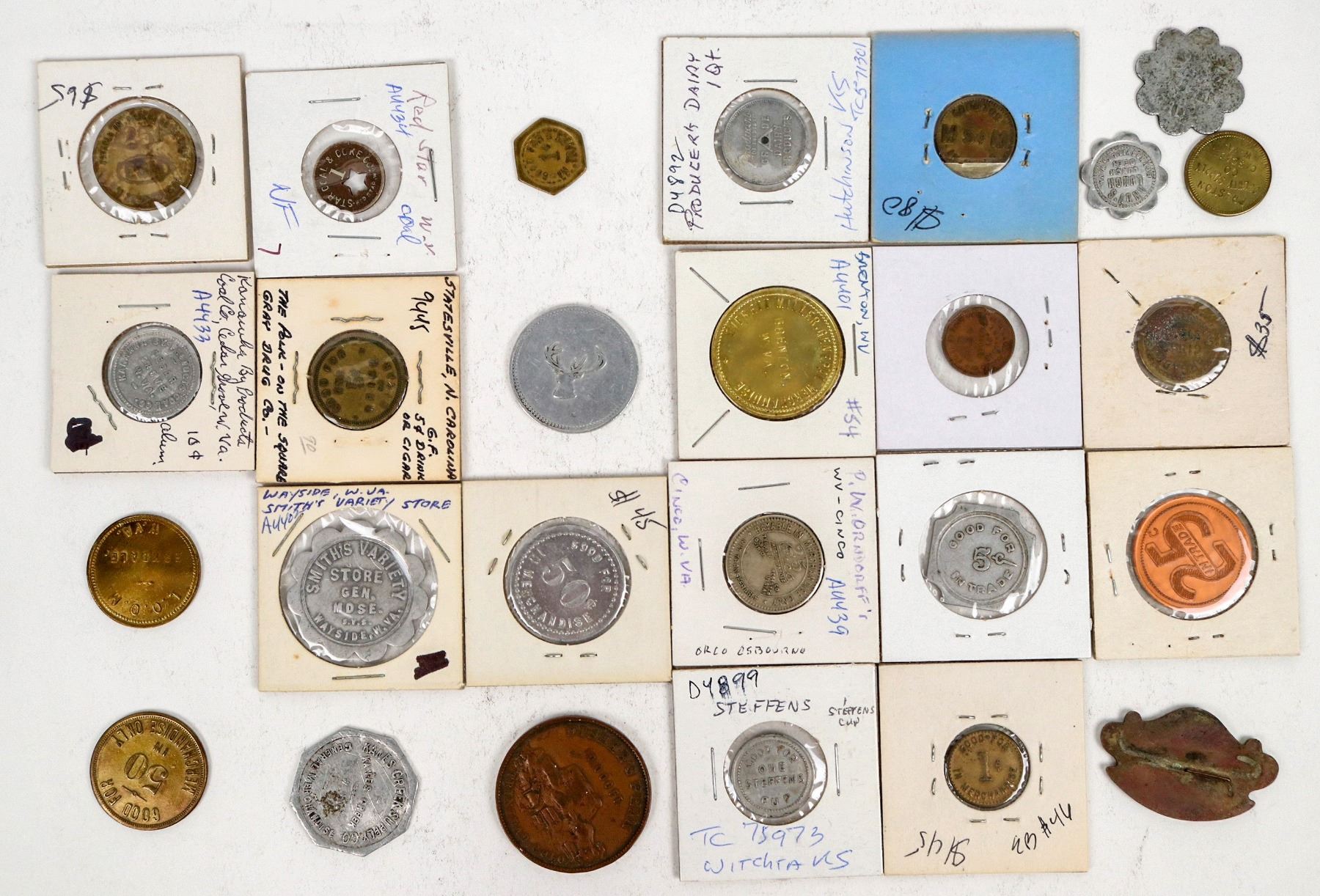 Collection of tokens from North Carolina; Kansas (4); Missouri (2); West Virginia (16); Mississippi.