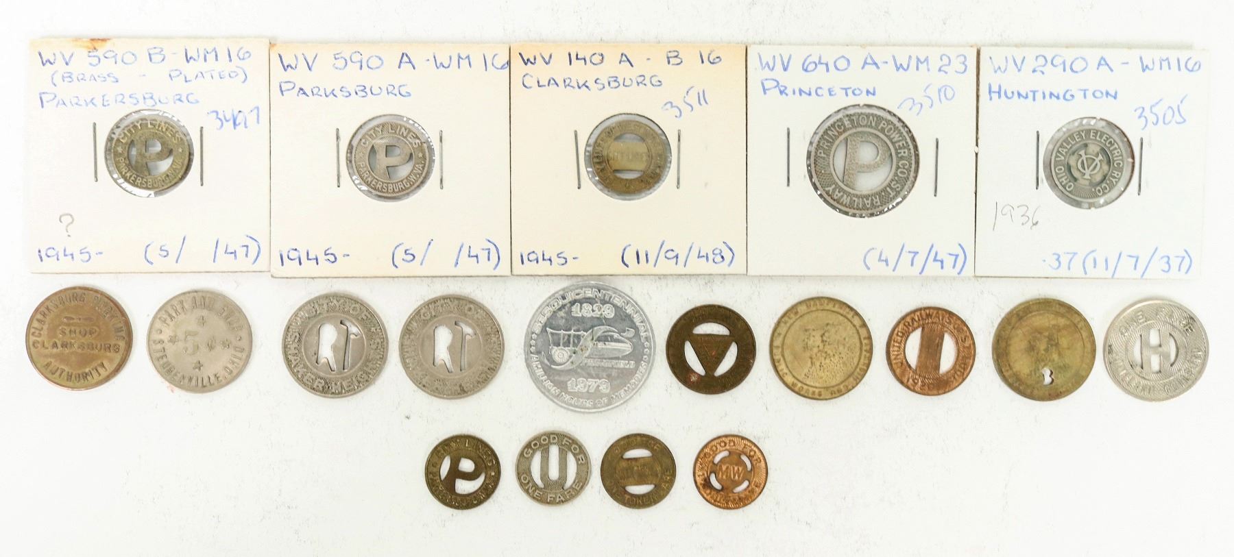 Group of 19 transportation tokens from various West Virginia companies. See photo for details.