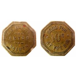 Good for 10c at the bar. Brass, octagonal. Choice. Rare! State: California City: Aptos Date: FHWAC#: 43571