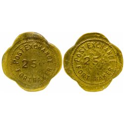 Post Exchange / 25c / Fort Baker // Post Exchange / 25c / Fort Baker. Scalloped (4), brass, 27mm. Slab, NCS, genuine. State: California City: