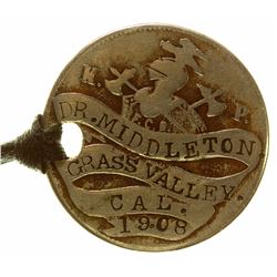 Siskiyou County. Good for one drink. Round, brass, worn but very readable. Please inspect. An exceptional California town. State: California Ci