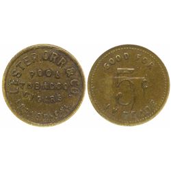 Very rare. Lester, Orr & Co. / Pool / Tobacco / Cigars / Ludlow, Cal. // GF / 5c / IT. Round, brass, 20mm. Slab, NCS, Genuine. State: Calif...