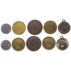 Lot includes: five Deer Lodge chapter no. 3 RAM tokens, 3 brass/copper, one aluminum; two State Elks Convention, 1957 and 1961; Montana Wool Growers,