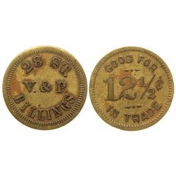 28 St / V. & P. / Billings // GF / 12-1/2c / IT. Round, brass, 21mm. Vale & Potter. State: Montana City: Billings Date: FHWAC...