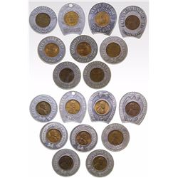 A choice collection of 80 different towns from California. Most of these tokens are of the modern era, a very collectible genre today. The towns inclu