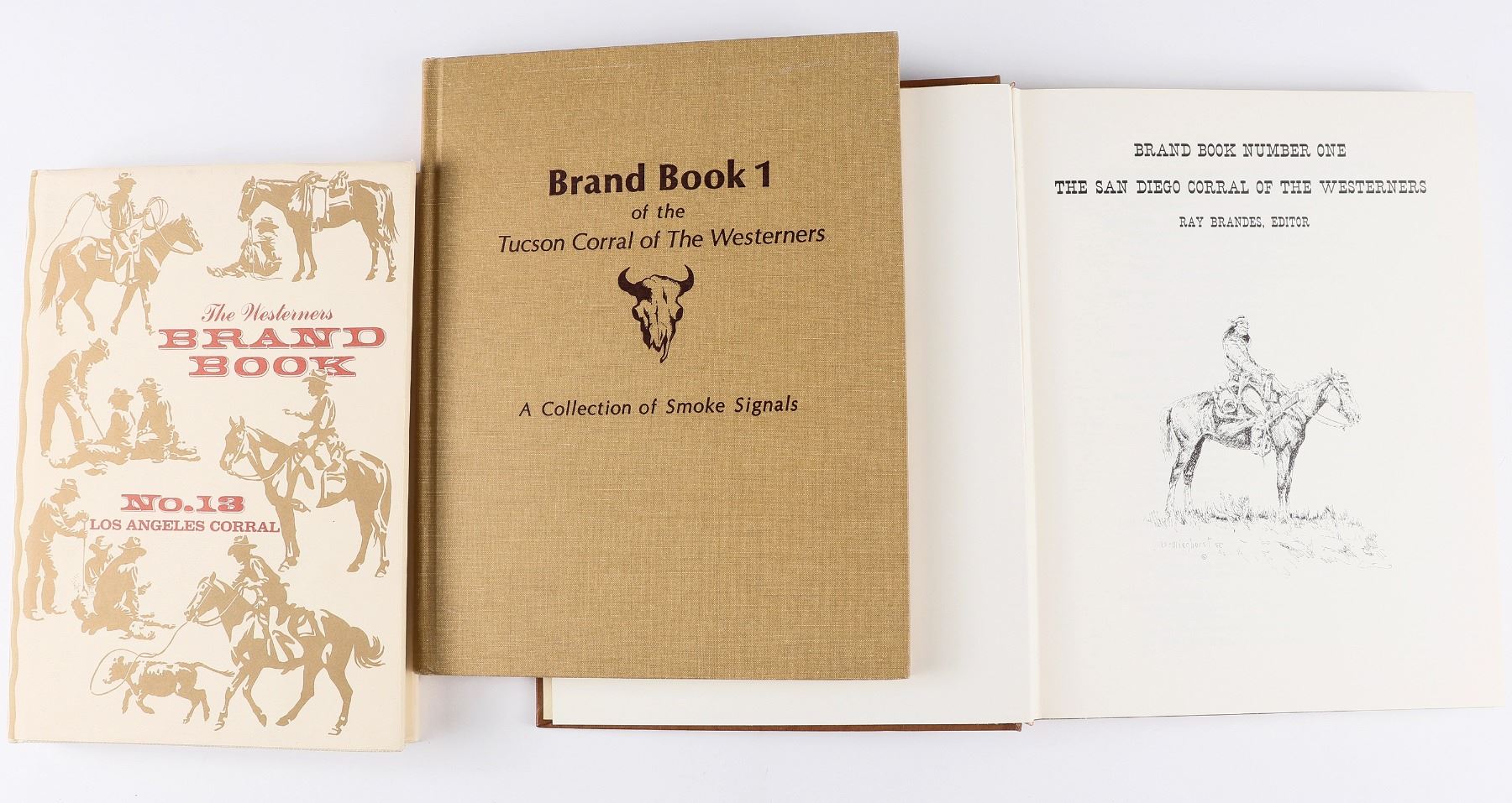 3 Western brands books. The Westerners Brand Book No. 13. los Angeles. Brand Book 1 Tucson Corral of the Westerners. Brand Book Number One, The San Diego Corral of the Westerners 1968.