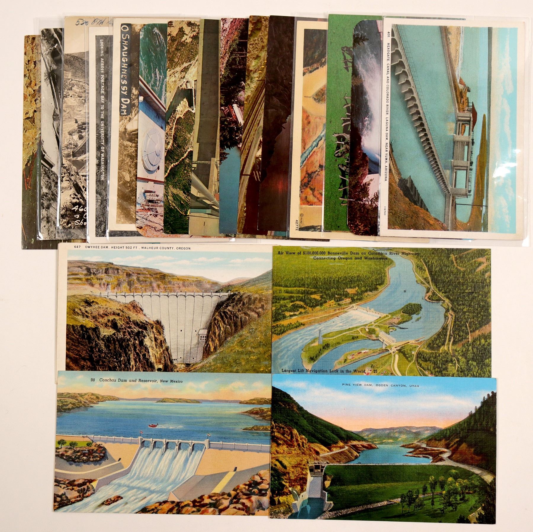 19 originals and 1 duplicate postcards of western dams. Includes Rocky Reach Dam on the Columbia River in Washington, Cabinet Gorge Dam on Clarksfork River near Clarkson, Idaho and Hungry Moose Dam in Montana.