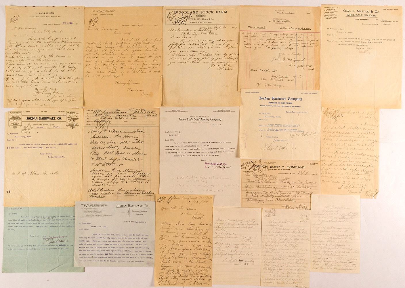 Lot of about 15 misc. letterheads issued to Montana merchants, 1906-1916. Best piece is Home Lode Gold Mining Co. (Silver City, SD) to Butte, MT, 1916 with map of claims on reverse. Rest is all material addressed to Al Furstnow of Miles City (Saddlery) from merchants in Nebraska, Oregon, North Dakota, South Dakota, Missouri, and Texas. Please inspect. City: State: Montana Date: HWAC# 50430
