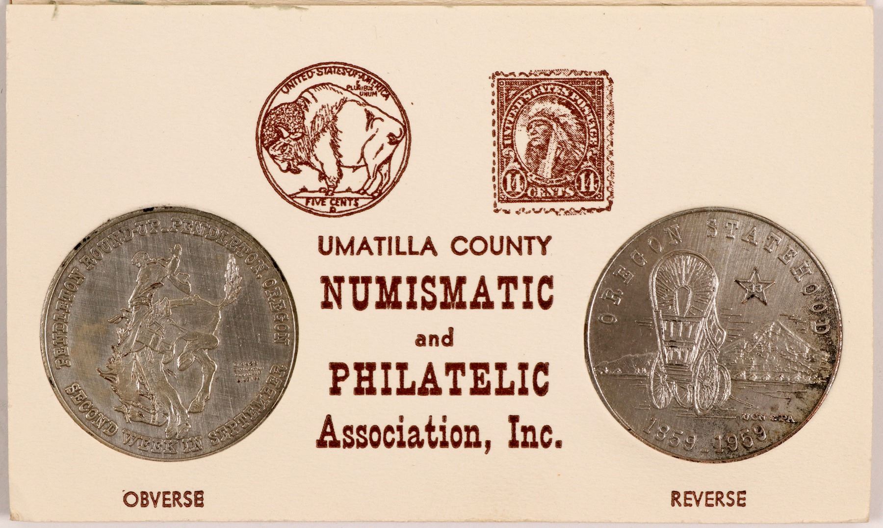 Lot of six medals from Western sites: 1) Pendleton Rodeo Centennial Coins, 1959, two pieces in original packaging; 3) Elko County Centennial, 1969;4) Bonanza, Ponderosa Ranch medal; 5) Tombstone Arizona Territory commemorative, 1972; Del Webb's Primadonna, Reno, NV, 1976 bicentennial medal. Salvatore Falcone Collection