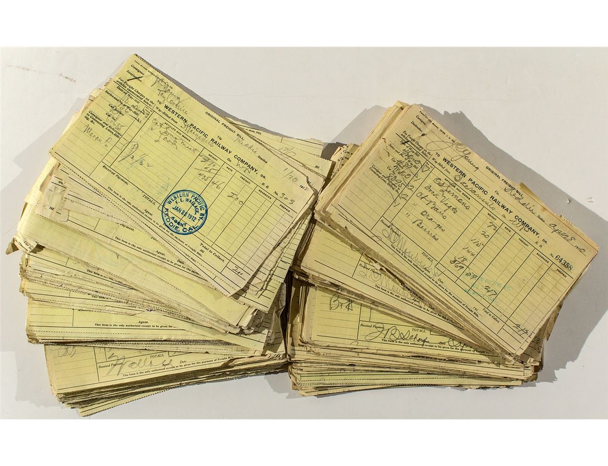 Approximately 500 Western Pacific Railway Company original freight bills dated 1910-1912.