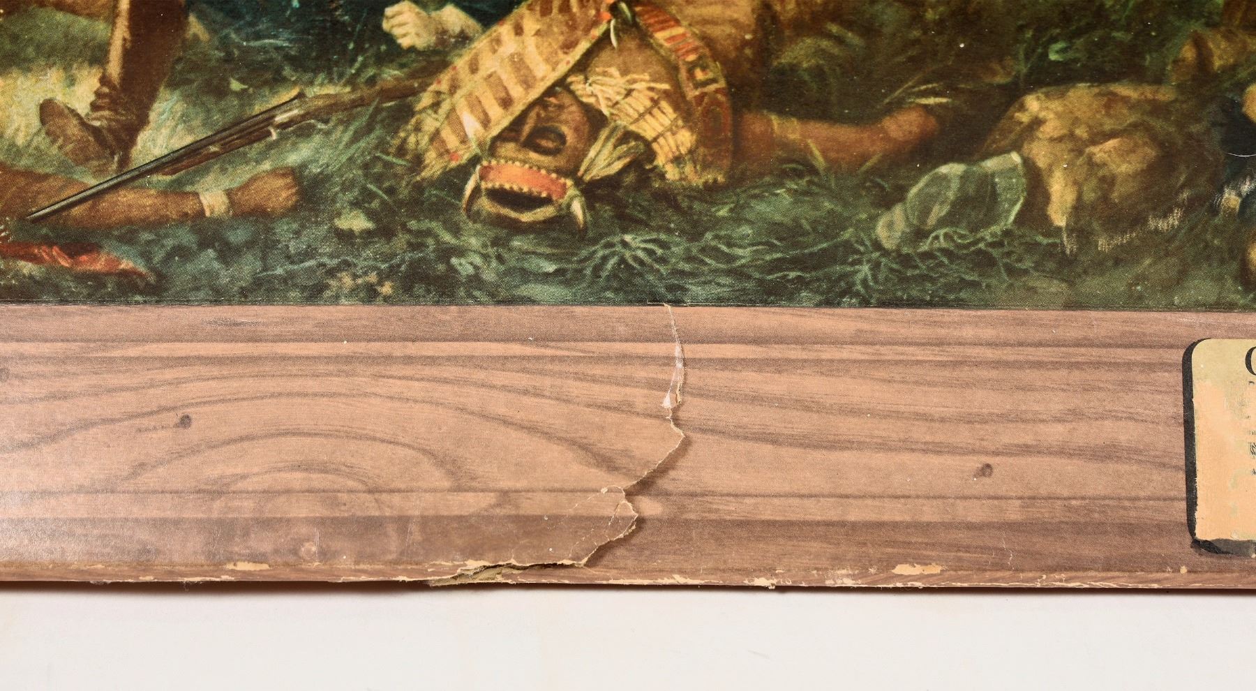Lot of (3) original Annheuser Busch Brewing Co. advertising pieces. Sizes for each vary, measurements as follows (from frames): Custer painting, 25"x32" (wood frame). Attack on the Overland Stage, 20"x30" (carboard frame). Custer's Last Stand, 42.5"x32.5" (cardboard frame). Classic western paintings, reproduced for A-B Brewing artwork. Likely saloon displays, paintings are "Custer's Last Stand" at Little Bighorn depictions (typical of two) and the "Attack on the Overland Stage" with Native Americans chasing the fleeing stage through the dusty prairie. All (3) pieces are in good condition, likely better with gentle cleaning. Frames have holes through them where previously mounted.