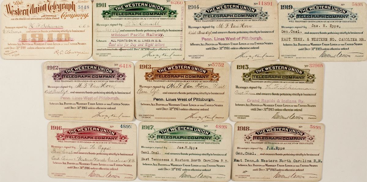 Lot of ten passes. Complete set: 1910-1919. Prag Collection City: State: United States Date: hwac# 23235