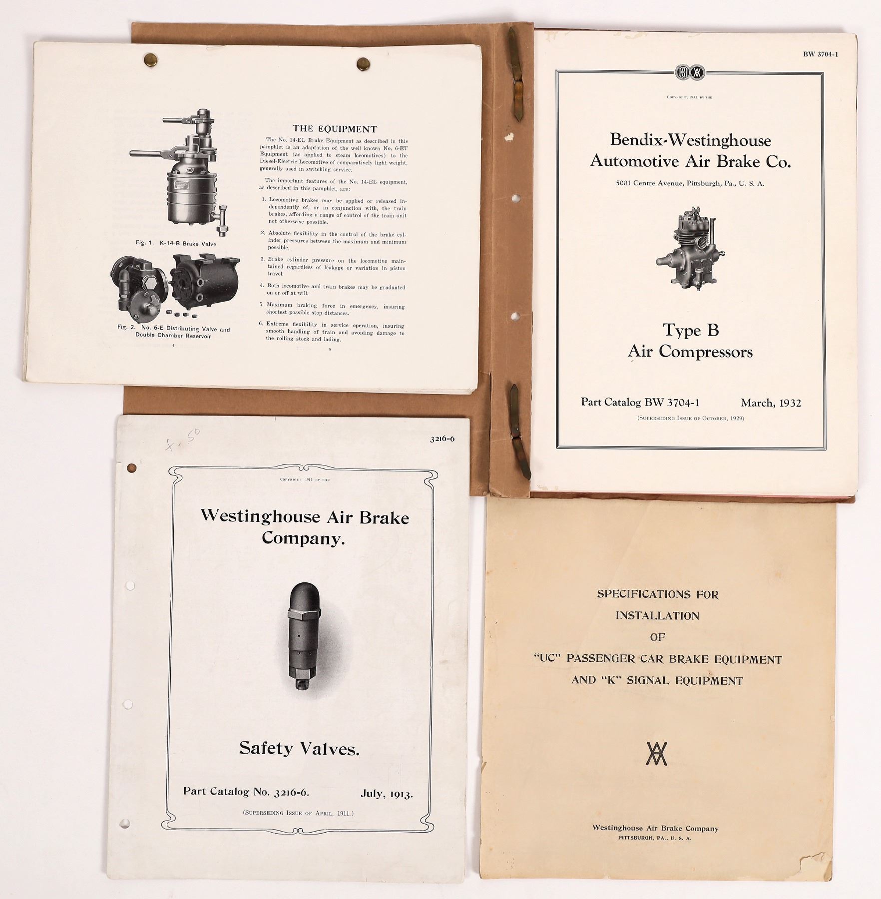 1932-34 Westinghouse Air Brake Company illustrated manual of valves, compressors etc. Mechanical drawings and parts info. Binder spine has 4" lower tear. 1932