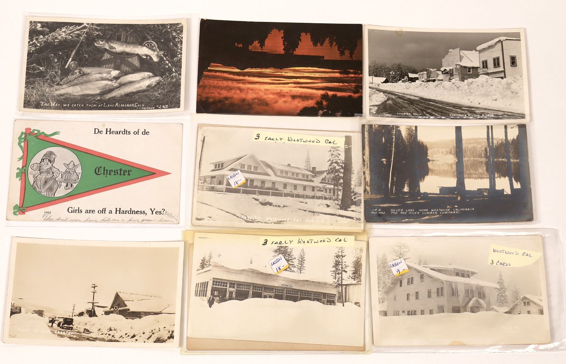 Several RPCs, including 10 cards showing early Westwood, also Chester & Lake Almanor.