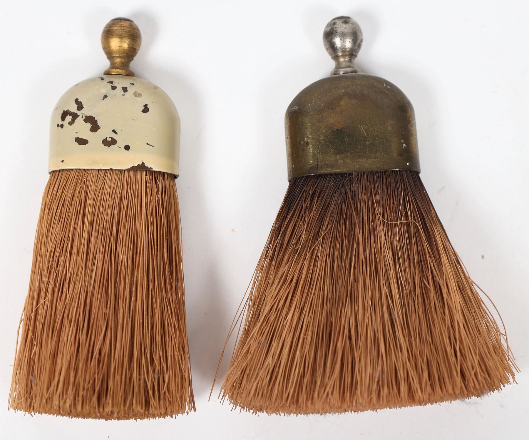 Pair of rare, antique whisk brooms, c. 1880-1900. Whisk brooms were mostly used for dusting furniture or clothing. Each of these brooms is approx. 3.5 inches long. Gary Bracken Collection