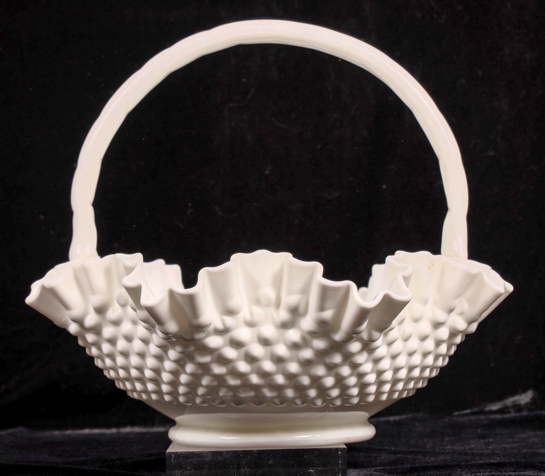 White ceramic basket with carry handle, no maker mark. 10x11", no apparent chips or cracks.