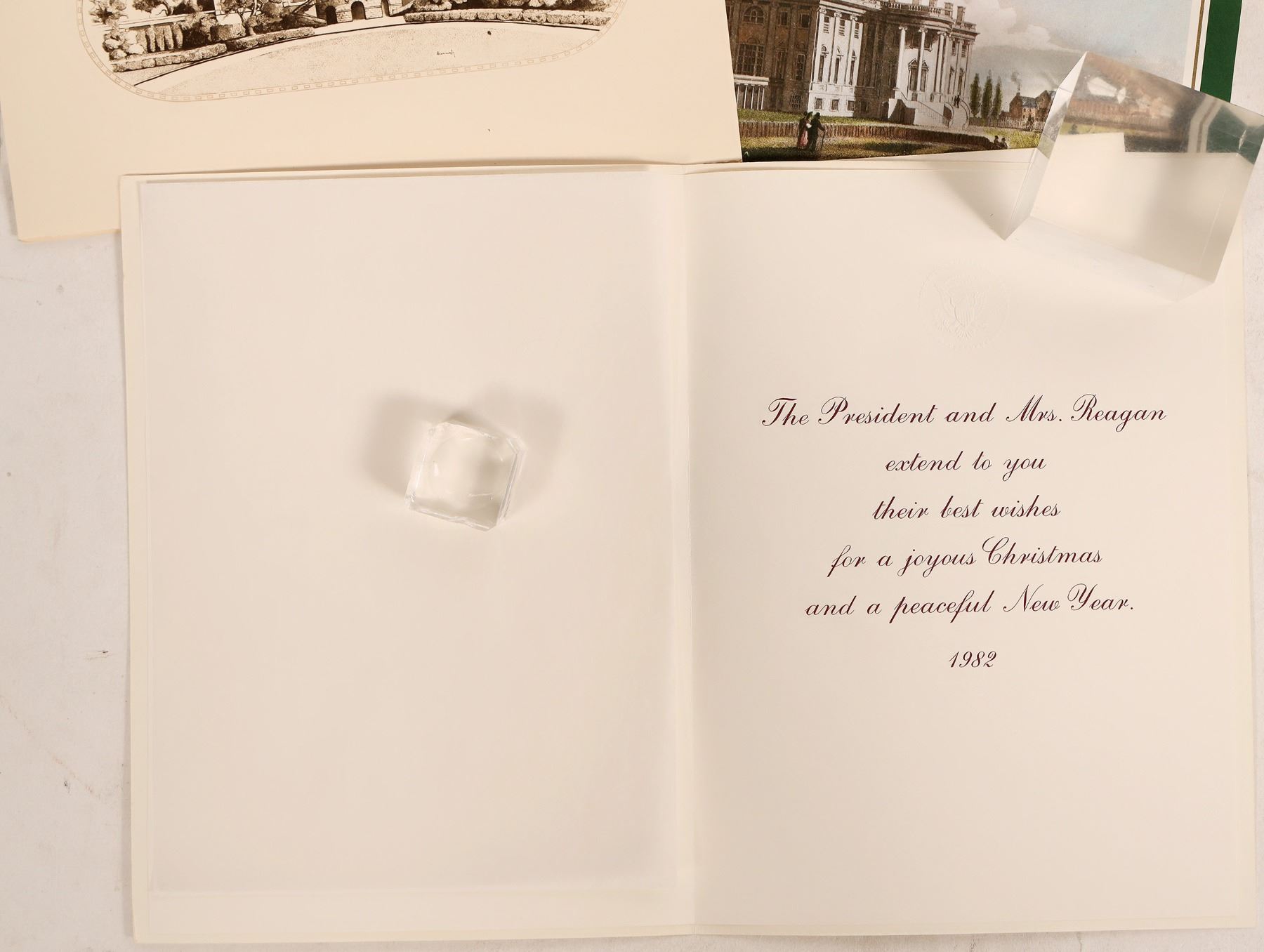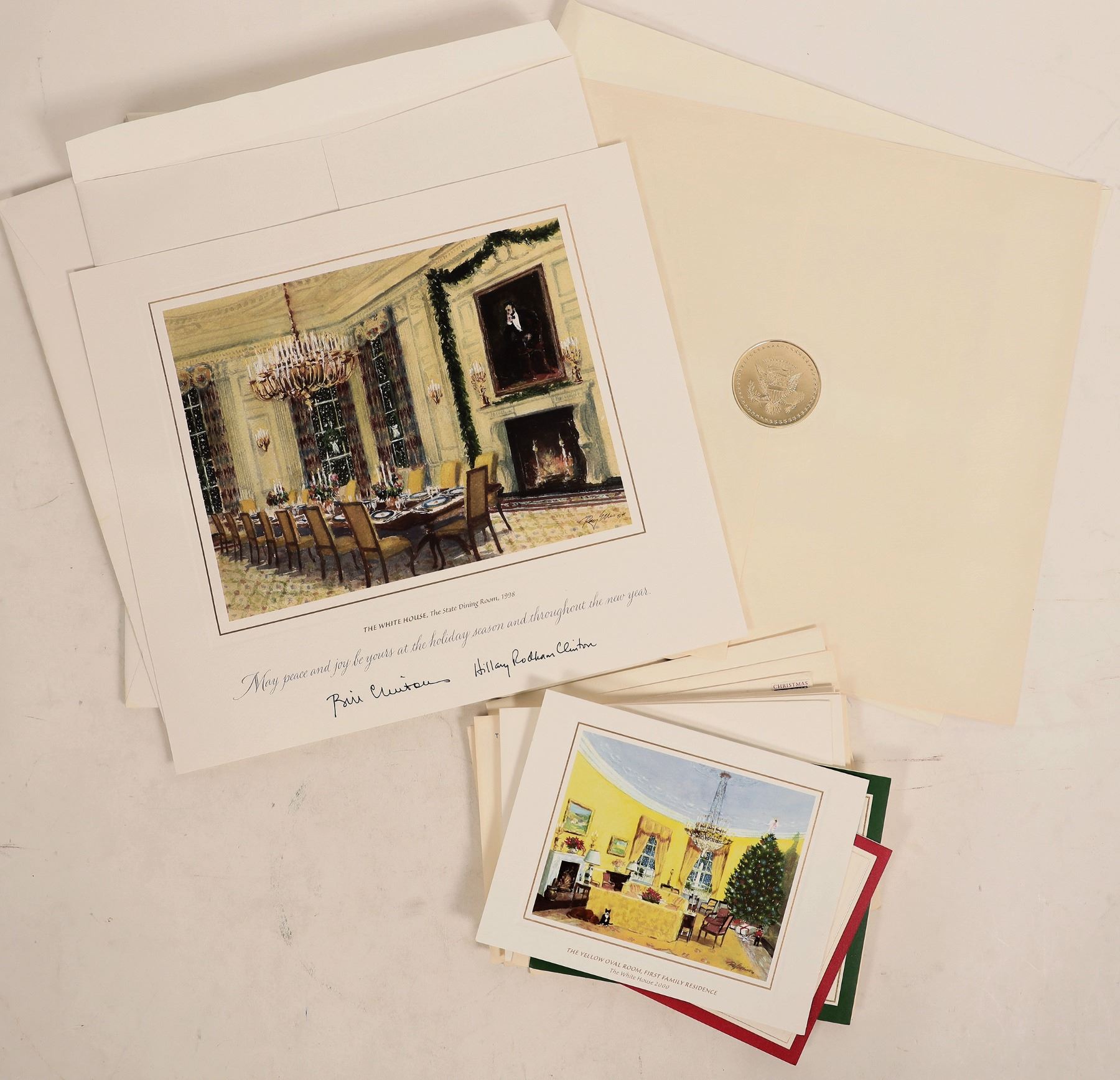 Group of 20 White House official Christmas cards. Small 6x7.5", some with original envelopes, some have been addressed and mailed. 1969, 1974, 1976, 1978, 1979, 1980, 1981, 1982, 1985, 1987, 1989, 1992, 1995, 2000. Large with envelopes 12.5x14", 1995, 1996, 1997, 1998, 1999, 2000.