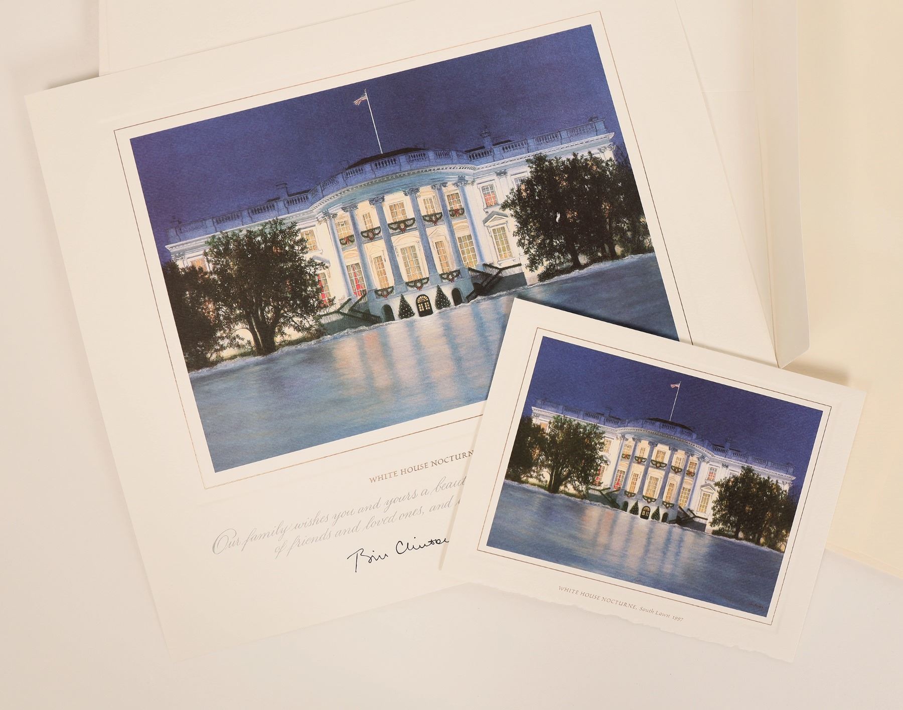 Official White House Christmas cards, small, mostly with envelope, some are addressed and mailed 5.25x7.75" 1969, 1974, 1976, 1978, 1979, 1980, 1981, 1982, 1983, 1985,, 1986, 1987, 1989, 1992, 1995, 1997, 2000, 2003. Large with original envelopes 13.75x13.5" 1995, 1996, 1997._x000D_