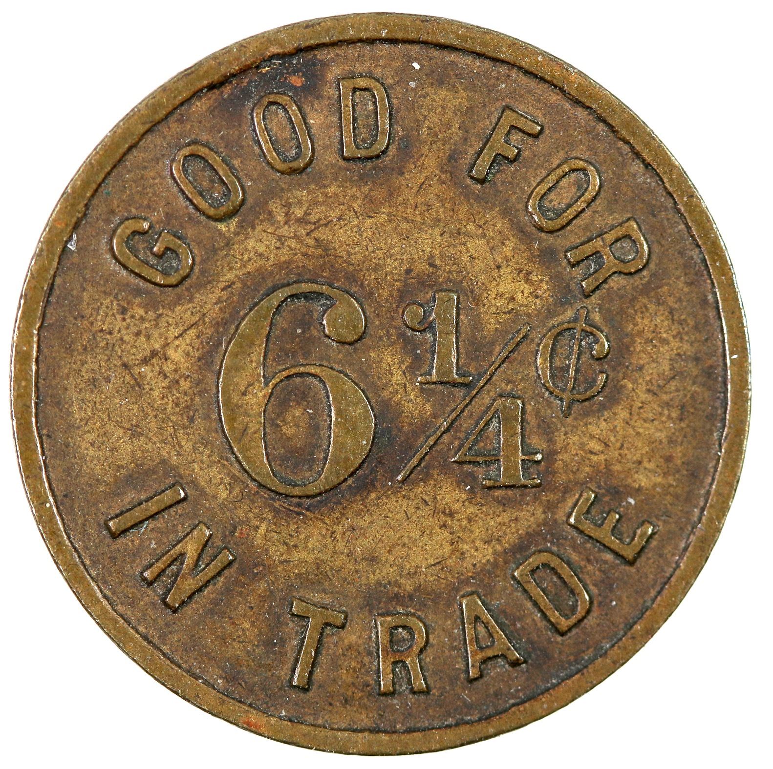 THE WHITE HOUSE / SALOON / PUYALLUP. // GOOD FOR / 6º¢ / IN TRADE; Br., rd., 21 mm, R-5. [ Puyallup Washington
