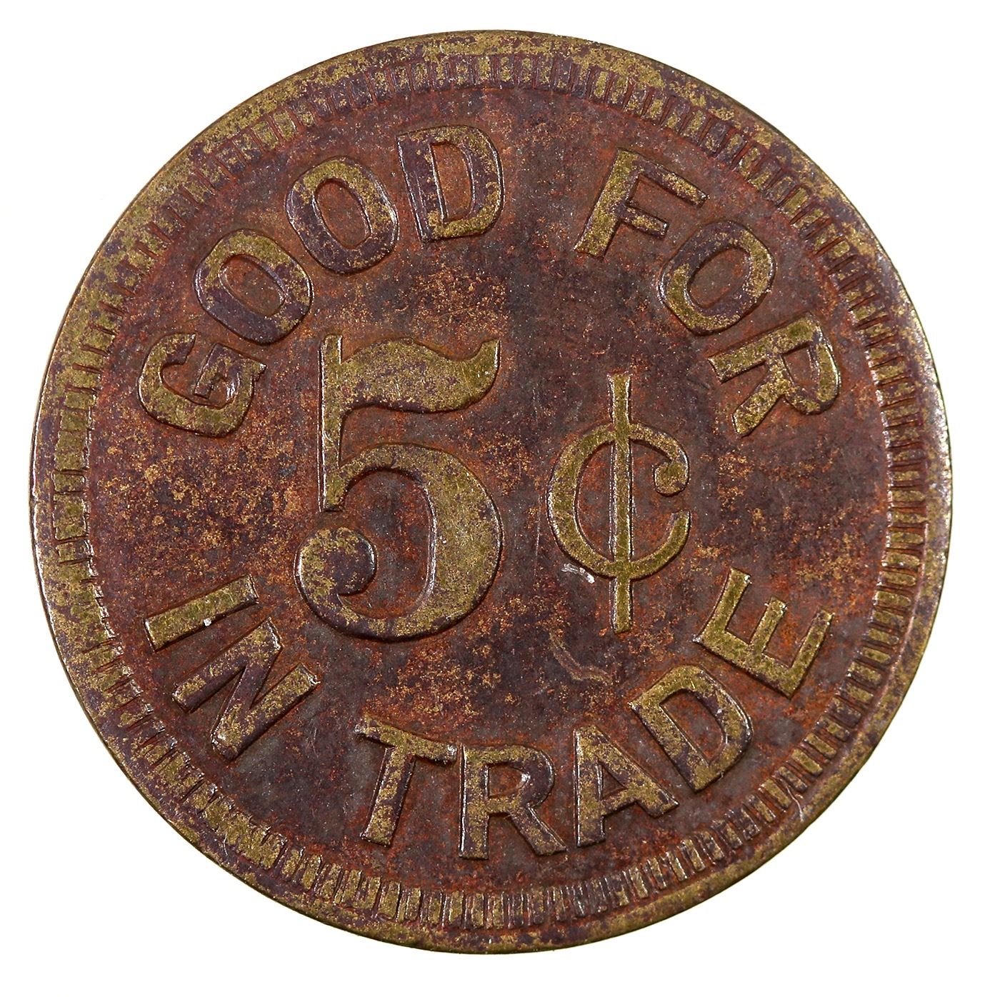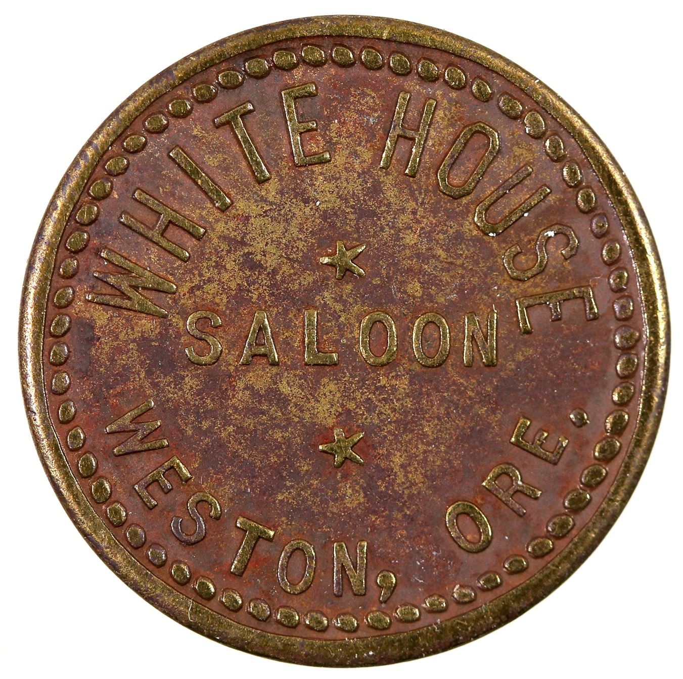 WHITE HOUSE / SALOON / WESTON, ORE. // GOOD FOR / 5¢ / IN TRADE; Br., rd., 21 mm, R 6.[ Weston Oregon