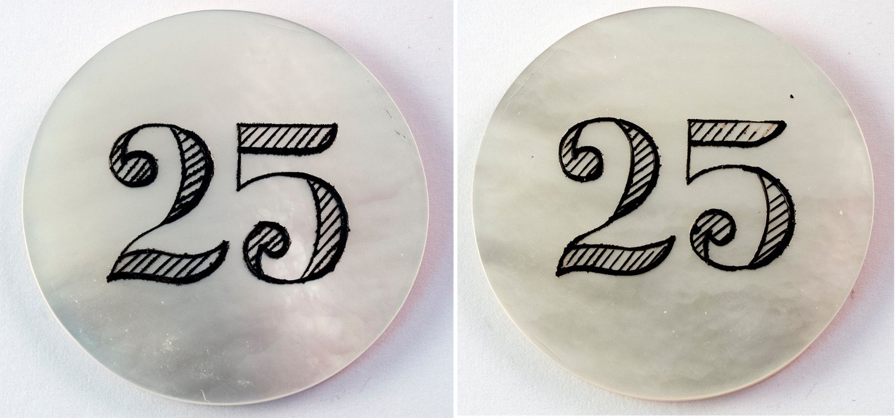 Has the denomination 25 on both sides. Choice. Date: Location: HWAC# 43667