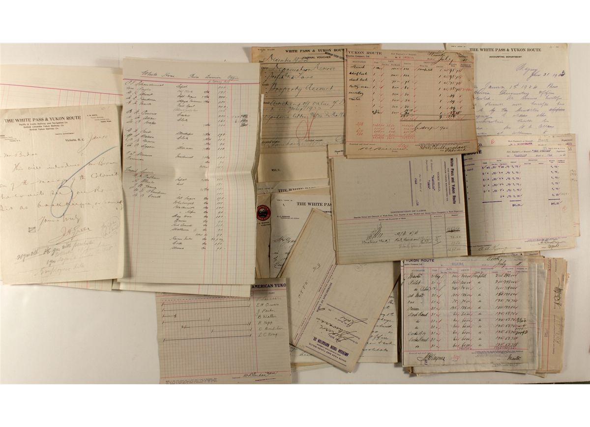 Nice archive of a steamship line working Alaska and the gold regions. There are about 15 pieces of correspondence c 1902 on printed letterheads, and 41 Time Rolls, showing the employee, job, dates, amounts paid, etc. eleven are from 1901, 3 from 1907, 13 from 1911, 1 from 1917, and 13 from 1919. Prag Collection