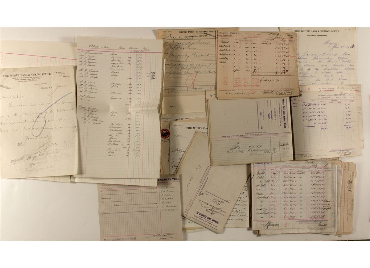 Nice archive of a steamship line working Alaska and the gold regions. There are about 15 pieces of correspondence c 1902 on printed letterheads, and 41 Time Rolls, showing the employee, job, dates, amounts paid, etc. Eleven are from 1901, 3 from 1907, 13 from 1911, 1 from 1917, and 13 from 1919. Prag Collection