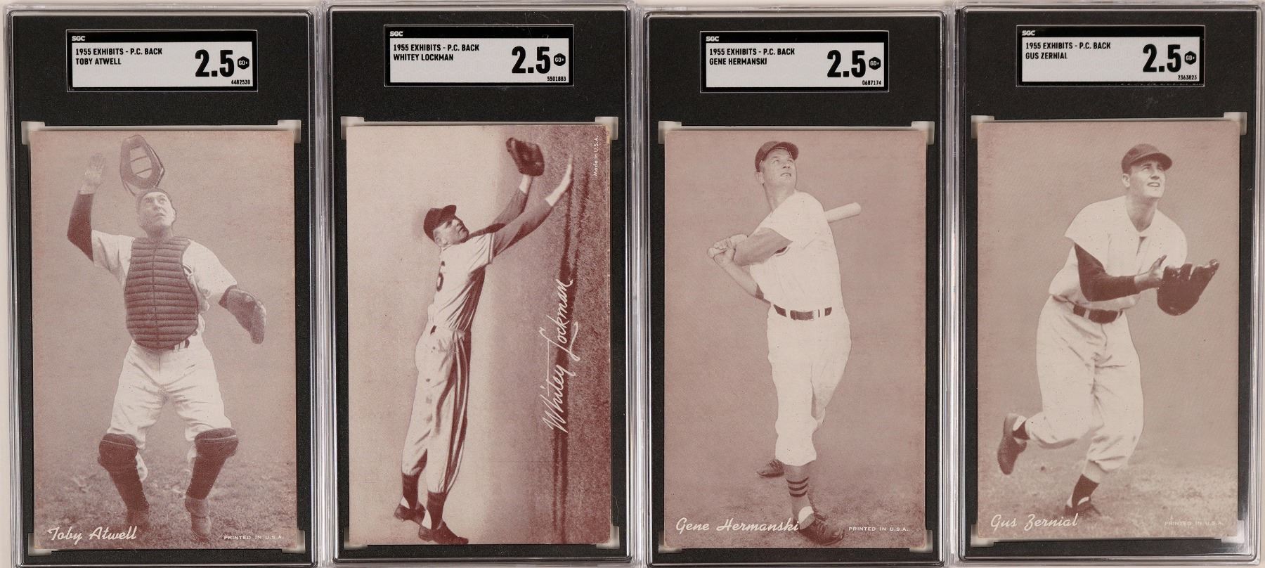 A group of four Mutoscope baseball postcards, including Gene Hermanski, Toby Atwell, Gus Zernial and Whitey Lockman. All are in good condition. See photos for more details.