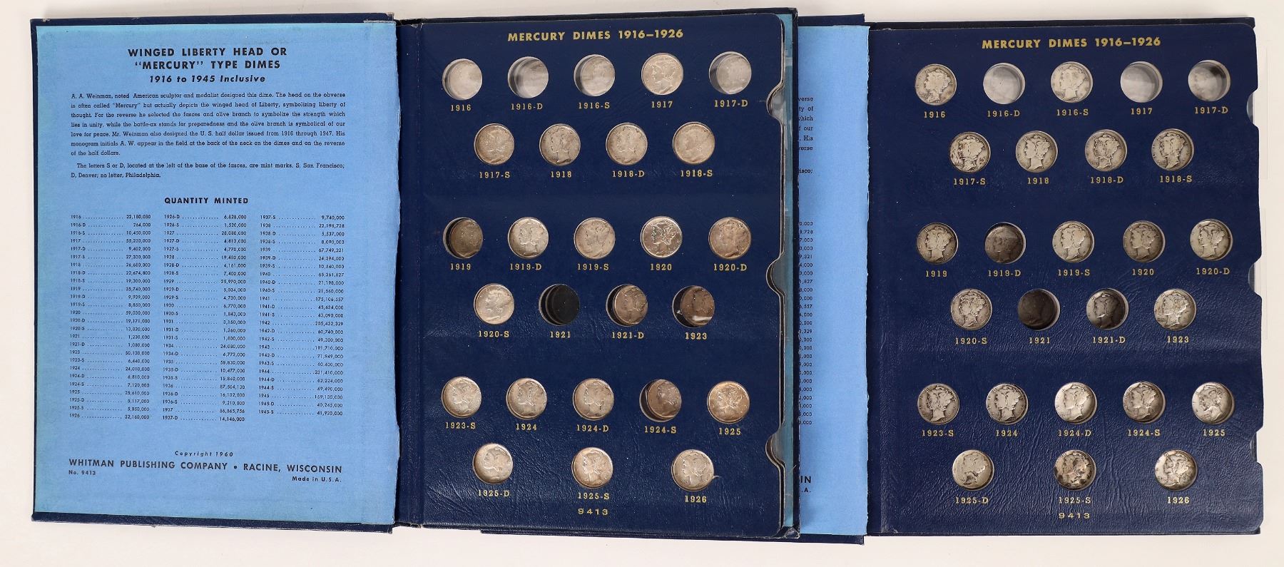 Lot of two Whitman Publishing blue album #9413: Mercury Dimes 1916-1945. 1) 59 coins in G-AU condition. 2) 65 coins in G-EF condition.