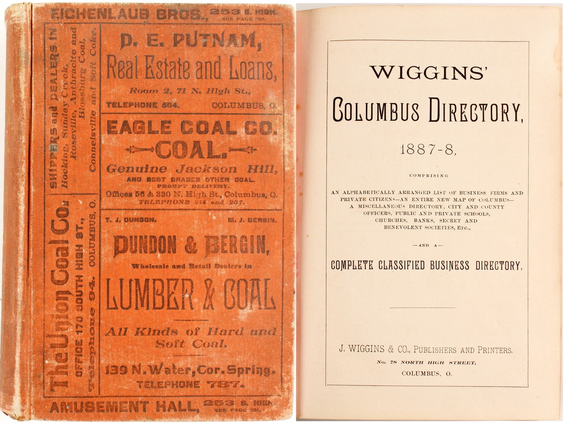 Wiggins’ Columbus Directory 1887-8, published by J Wiggins & Co., Columbus, Ohio._x000D_
