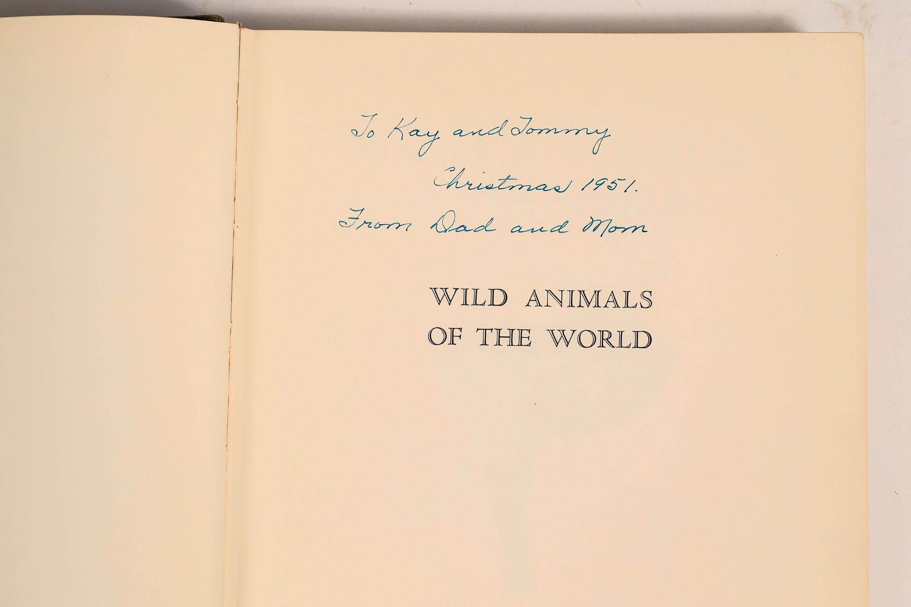 This hardcover book Wild Animals of the World" by William Bridges with animal portraits is by Mary Baker. 272 pp. and beautifully illustrated or "animated" by Baker throughout. It starts at Aardvark and ends with the Zebu. Published in 1948. Broken binding, green fabric cover. Please see photo for details. Stuart Mackenzie Montana Ephemera Collection Stuart Mackenzie Montana Ephemera Collection