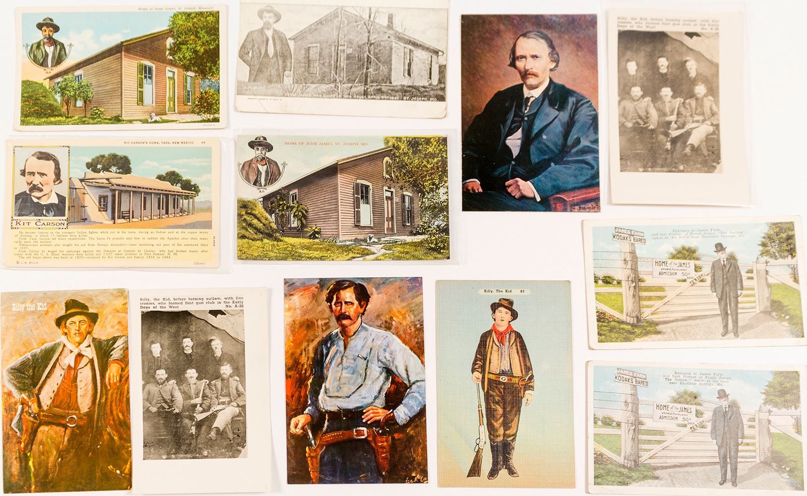 Twelve postcards of the stars of the Wild West: Kit Carson (2), Frank and Jesse James (5), and Billy the Kid (5). Date: Location: HWAC # 52426