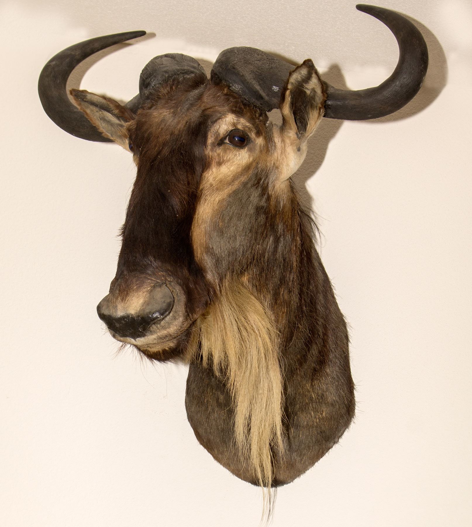 A shoulder mount of a Wildebeest from Tanzania. 23 2/8", right turn. Killed prior to 1988, on display in a western museum since that time. State: City: HWAC#: 43756 Date:
