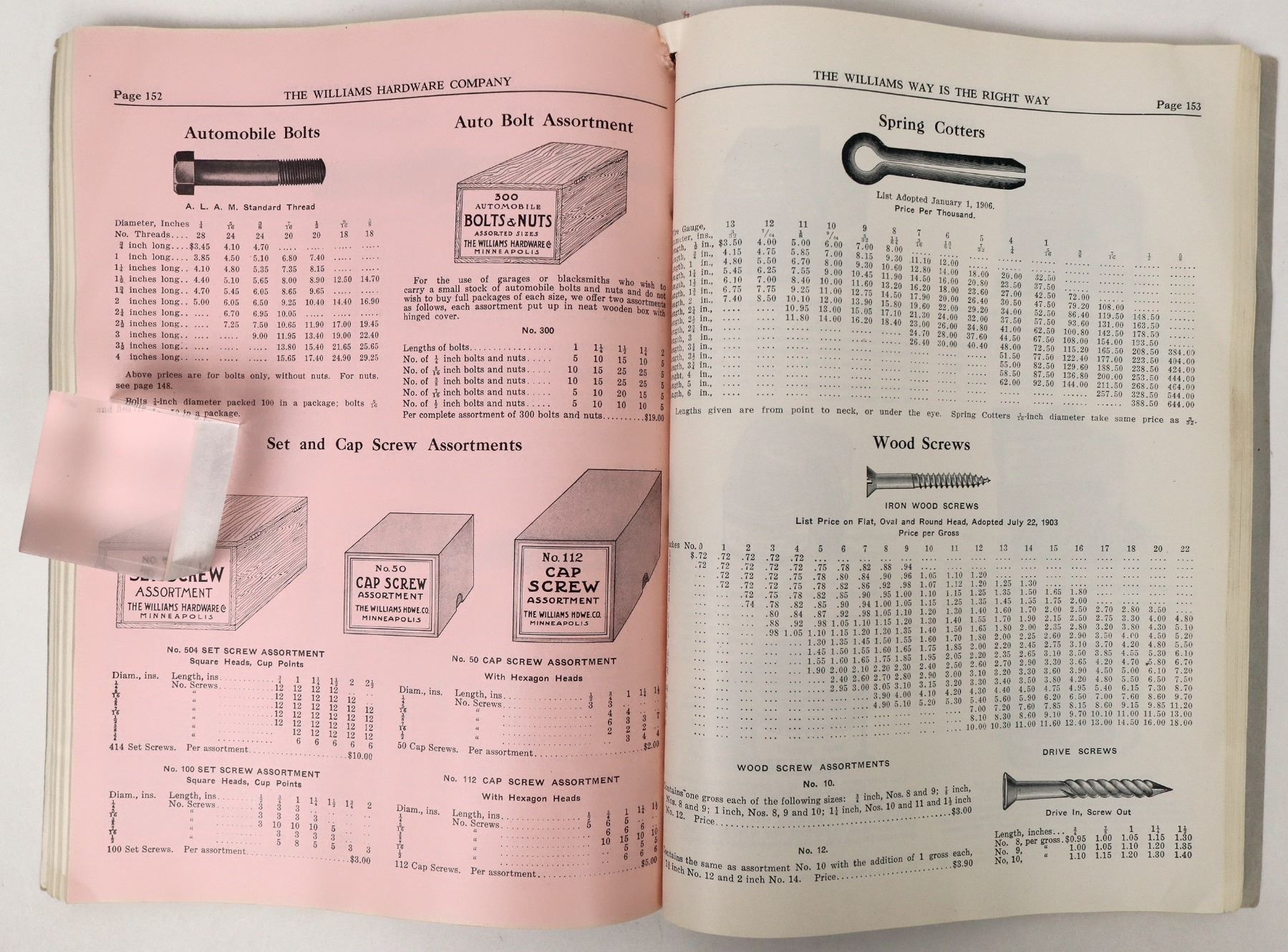 1915 Williams Hardware, Automobile Accessories and Garage Equipment 248pp catalog loaded with parts illustrations and separate dealer price list. Nice condition.