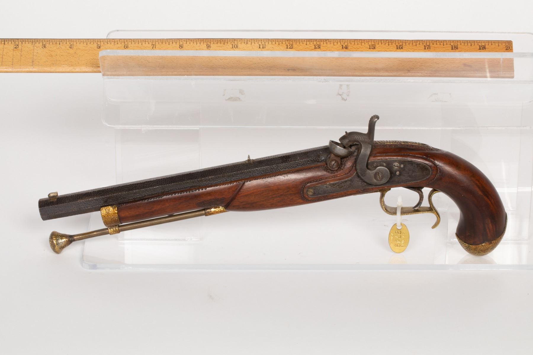 Pistol, Williams & Cline, 12Ó-barrel, Replica Flintlock SN: N/A, JMD Oval Tag: 2749, Condition: Good, >