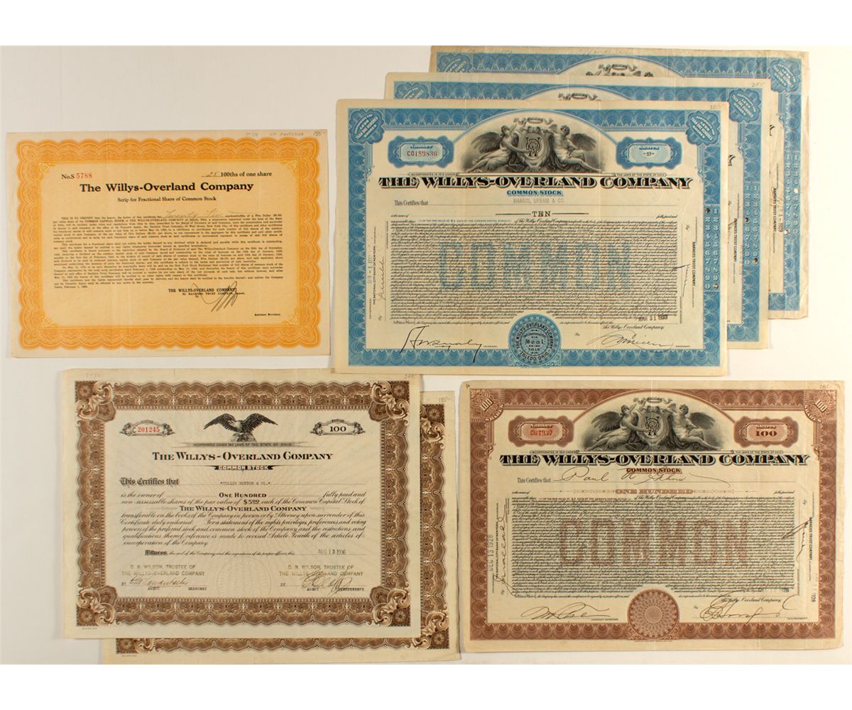 Makers of the "Jeep" for WWII. Seven certs. Prag Collection