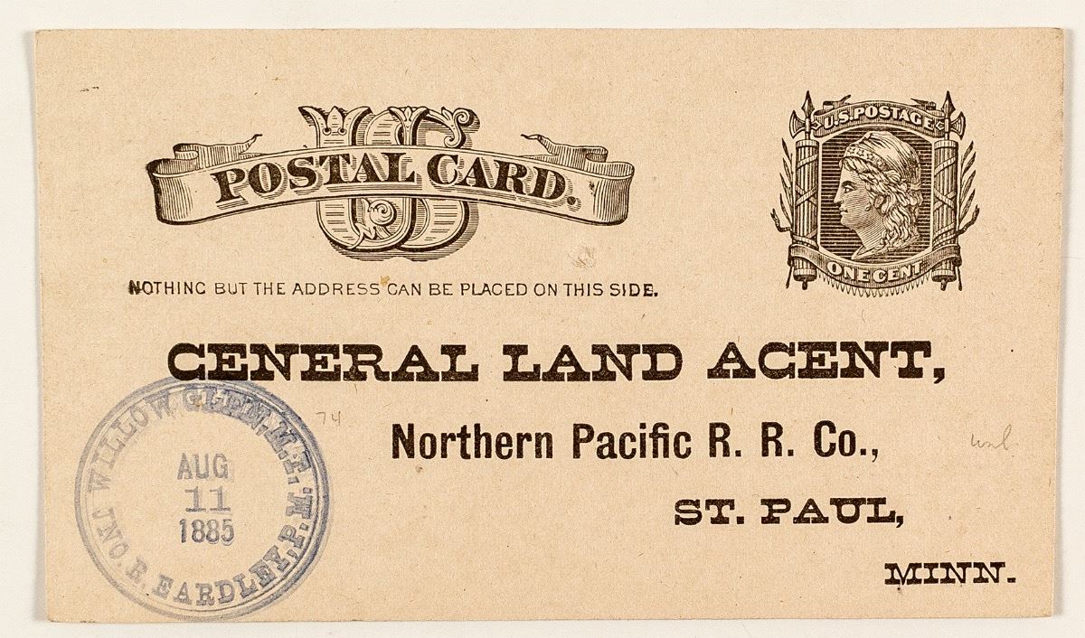Post office was only open from 1882 to 1885 and only two examples are recorded in Shellen & Dunn. Blue double ring. Jno E Earley Post Master. (Svoboda Collection) City: Willow Glen State: Montana Date: 1885 HWAC# 35244