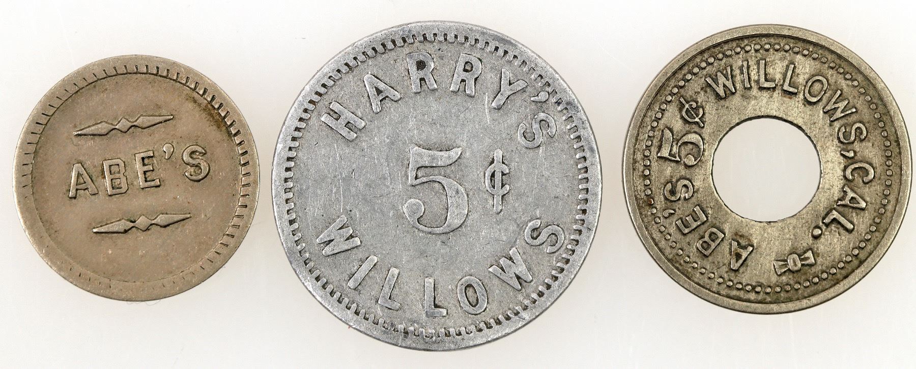 3 Willows tokens. Harvey's. Abe's. Del Monte. Willows California