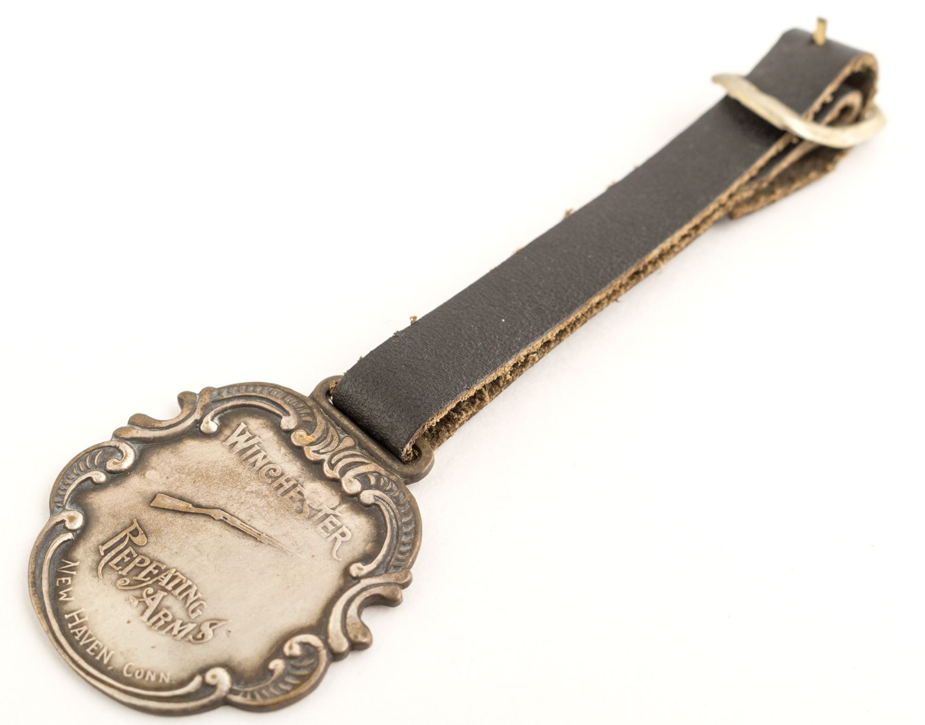 Pictorial of a rifle. Back says "Pat. Pend." Simple, butnice looking FOB. State: Connecticut City: New Haven HWAC#: 48105 Date: