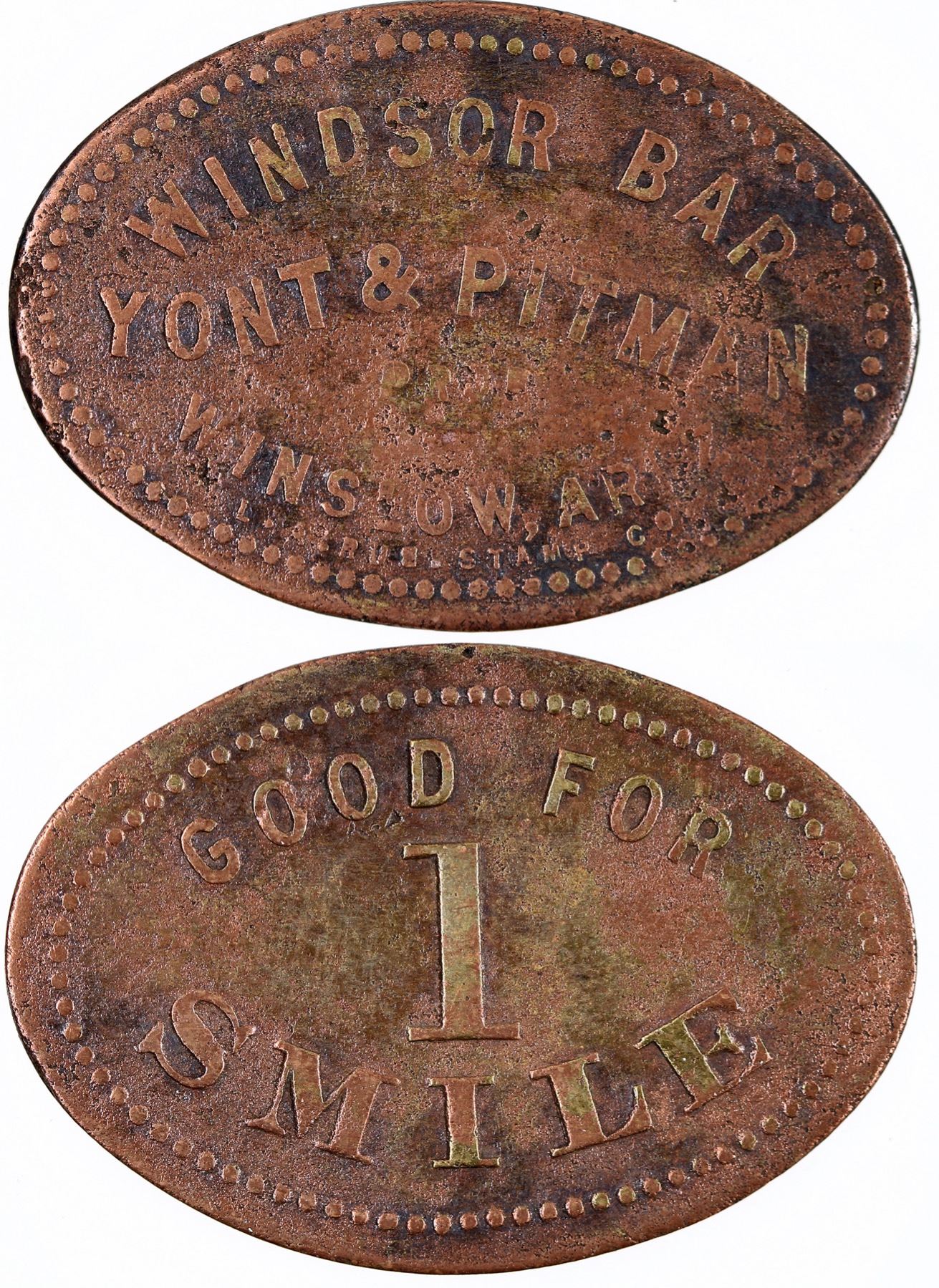 WINDSOR BAR / YONT & PITMAN / PROP. / WINSLOW, ARIZ. / L.A. RUB. STAMP CO.