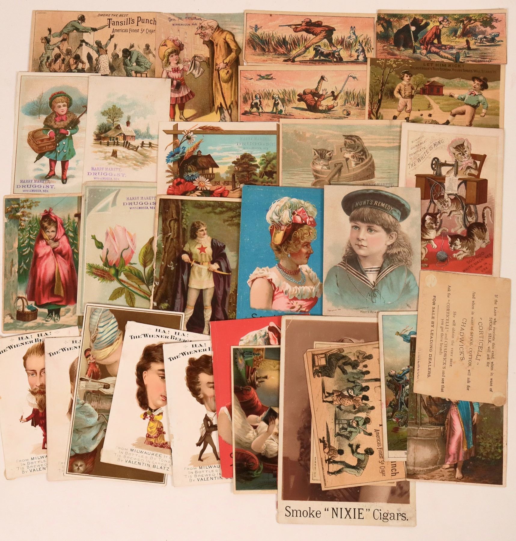 Lot of 30. Includes: FC Robins; N. Levy & Co., agents for Wiener Beer; Chas. Chenoweth; druggist TC Hansen; W.F. Stevens; druggist T.C. Hanson; druggist Harry Marett; Geo Walher; and E. Reinhart & Co.