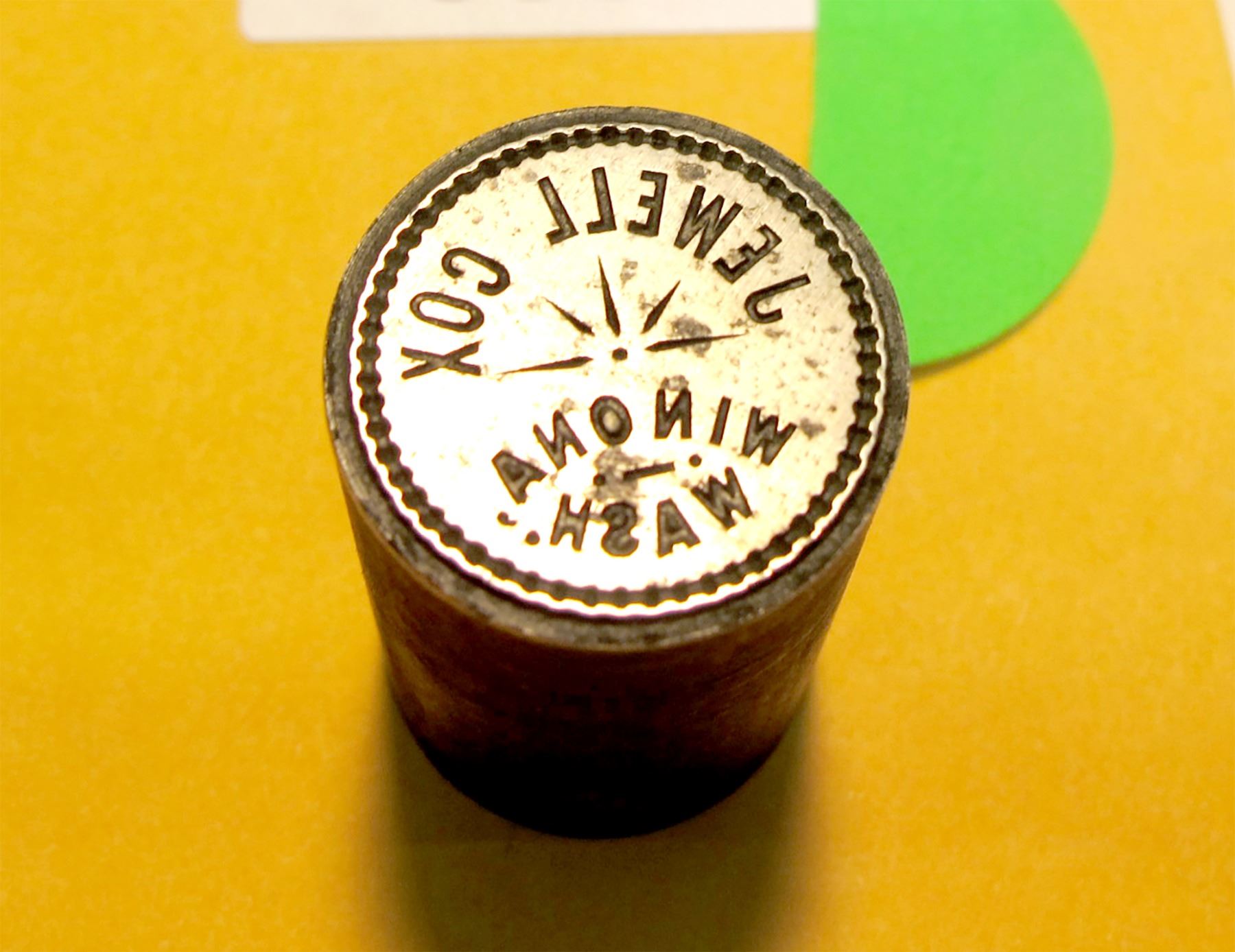 1 token die self identified from Winona, WA. 21mm: Jewell Cox. Northwest Territorial Mint Historical Die Collection